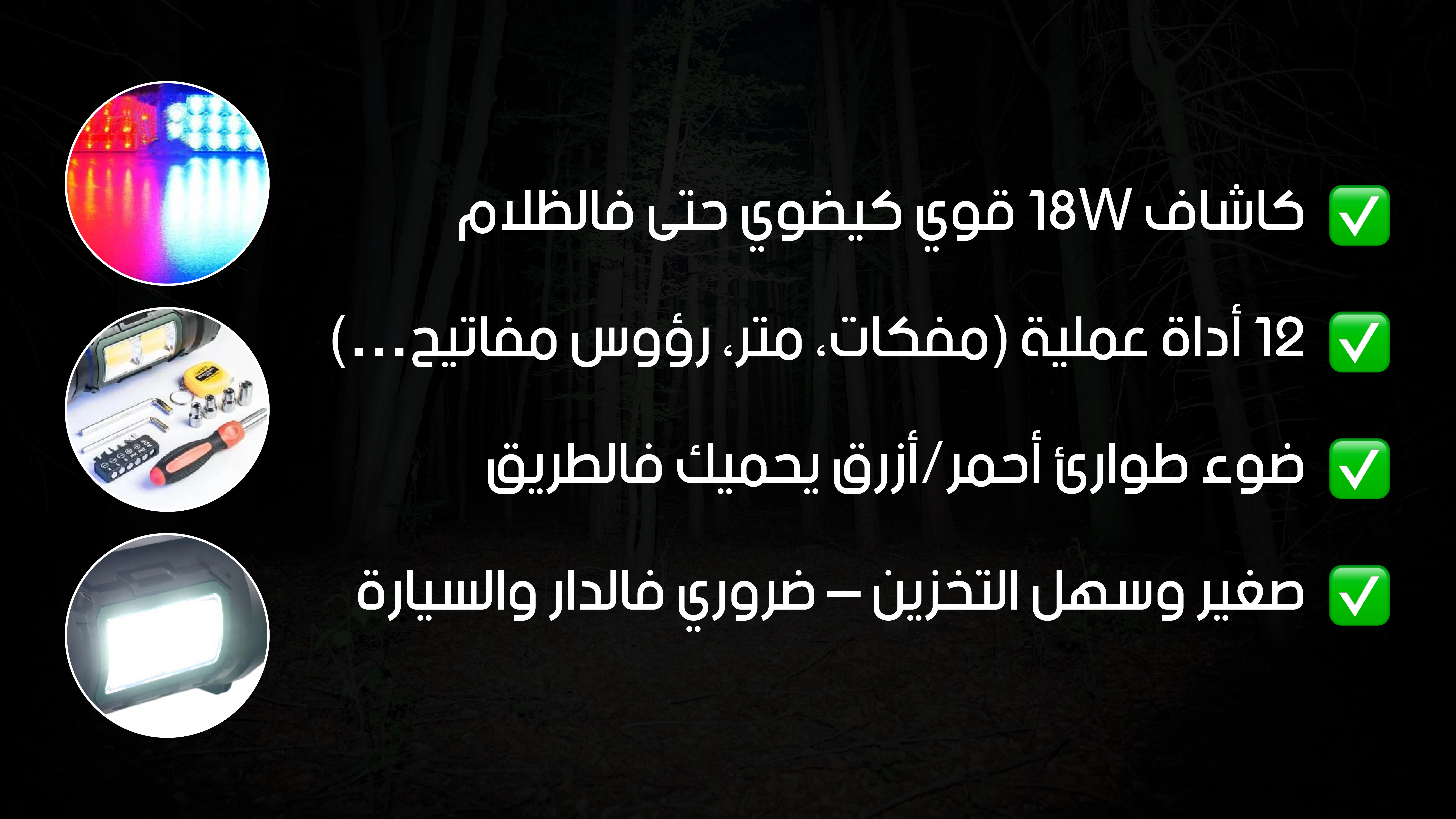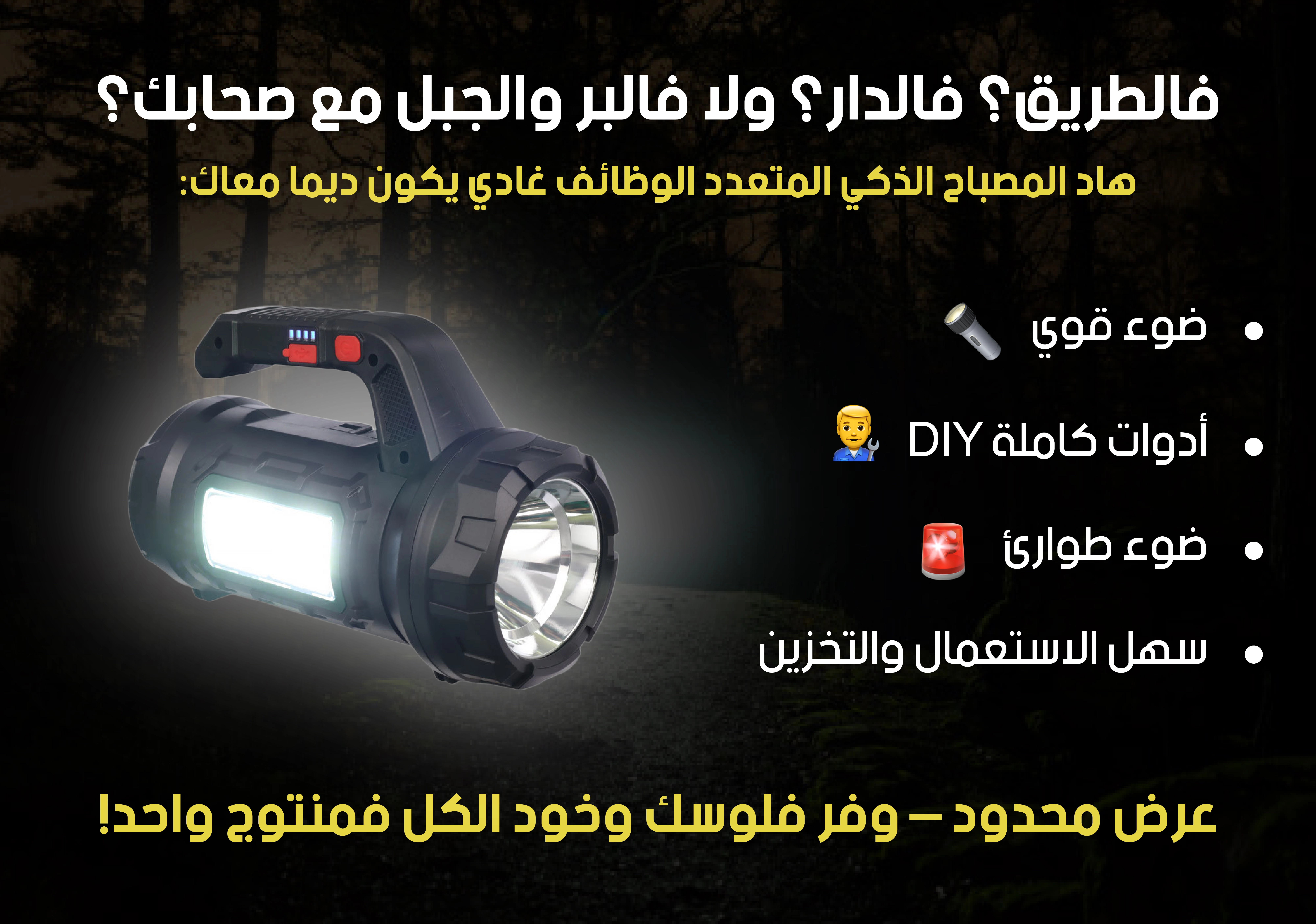 مصباح متعدد الوظائف 12 أداة + كاشاف قوي للطوارئ والرحلات